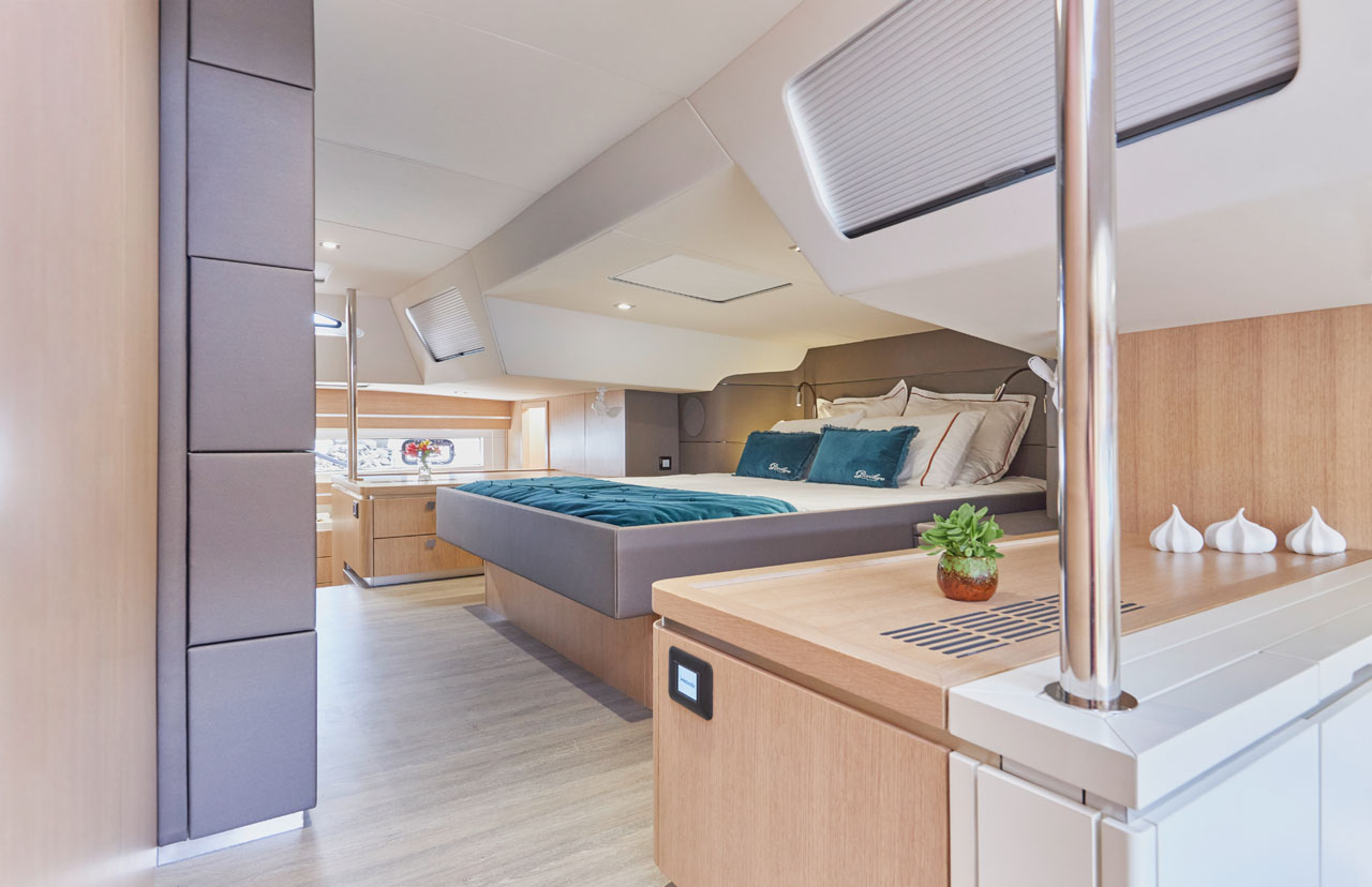 The new Signature 510 is genuinely unique in this size range. Designed and built to be our strongest, safest, most luxurious 50ft Catamaran ever. Strong and safe come as standard with Privilège but with the new Signature 510 we went even further. The full beam owner’s suite is simply out of this world, and the protected helm position, which remains part of the cockpit whilst offering a wonderful view forward, is unrivalled.
